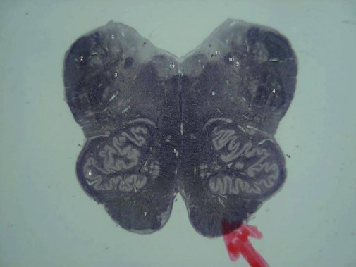 Corte de Tronco Encefálico na região do Bulbo caudal